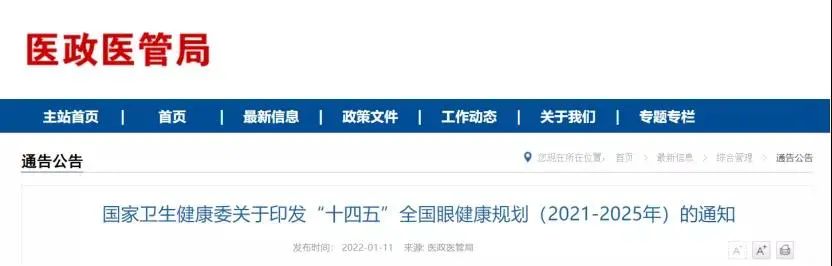 《“十四五”全國眼健康規劃(2021-2025年)》
