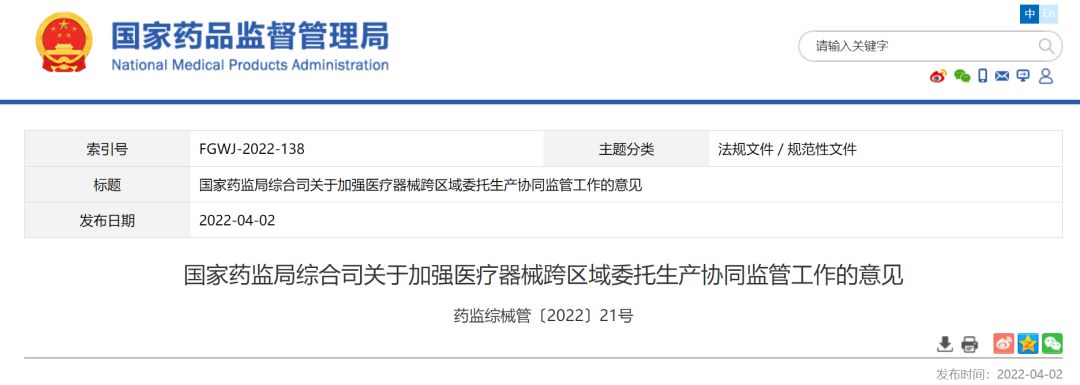 實施醫療器械注冊人制度是推進醫療器械審評審批制度改革、加強醫療器械全生命周期管理的重要舉措。隨著《醫療器械監督管理條例》(國務院令第739號)的施行,注冊人制度全面實施,醫療器械生產組織形式更加多樣,特別是醫療器械注冊人跨省、自治區、直轄市進行委托生產(以下簡稱“跨區域委托生產”),涉及省級藥品監管部門的職責分工與協調配合,給監管工作帶來新的挑戰。為切實加強醫療器械注冊人跨區域委托生產監管,夯實注冊人醫療器械全生命周期質量管理責任,加強監管部門協同配合,保障醫療器械質量安全,現提出以下意見。