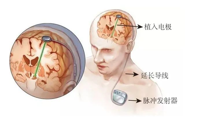 在發病初期,藥物治療是首選,后期隨著疾病進展,藥物逐漸失去療效,就可以使用目前被廣泛認可的首選外科療法——腦深部電刺激療法(Deep Brain Stimulation,DBS),也稱腦起搏器,它是一種有源植入醫療器械,于20世紀70年代出現,是通過立體定向技術,將電極植入腦內特定核團,連接植入胸部的脈沖發生器,發放電脈沖對特定核團神經元的功能進行調控,以改善癥狀,是目前國際上最先進的神經調控技術,用于藥物不能有效控制運動障礙癥狀的帕金森患者。