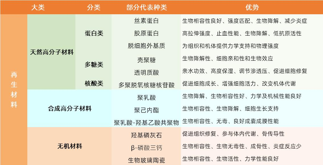 3)對再生修復(fù)材料需具有生物降解性或吸收性,降解速率應(yīng)與組織再生速率相匹配。