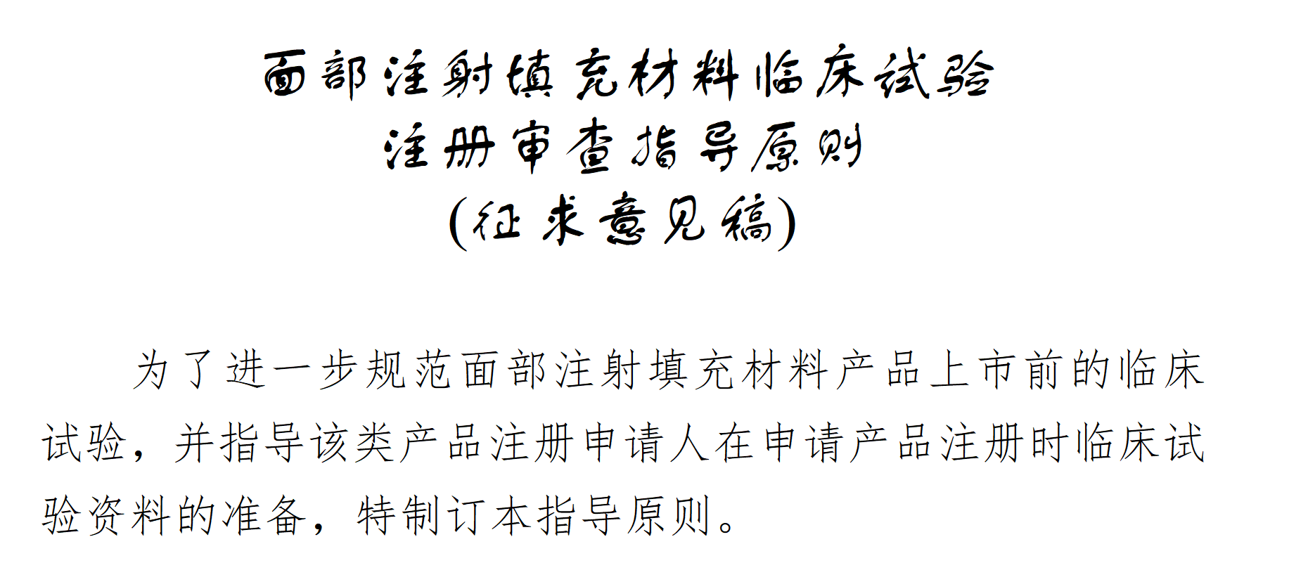 為進一步規范面部注射填充材料產品上市前的臨床試驗,國家藥監局器審中心發布《面部注射填充材料臨床試驗注冊審查指導原則(征求意見稿)》,針對不用材料面部注射產品臨床試驗中的適用范圍、試驗設計、臨床評價指標、樣本量、入排標準等進行了規范。