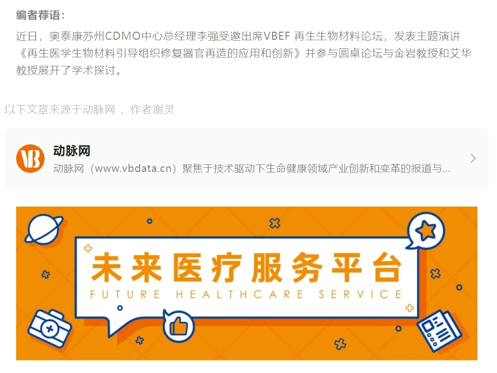 2024年5月7日至10日,第八屆未來醫療生態展會以“新青年”為主題,由VB100、動脈網、蛋殼研究院、動脈橙主辦,天津經濟技術開發區(TEDA)聯合主辦,與天津濱海中關村科技園管委會、北塘灣數字經濟產業園戰略合作,于北京·北人亦創國際會展中心正式召開。作為此次論壇備受關注的熱門論壇之一,生物再生材料論壇于5月10日下午圓滿落幕。