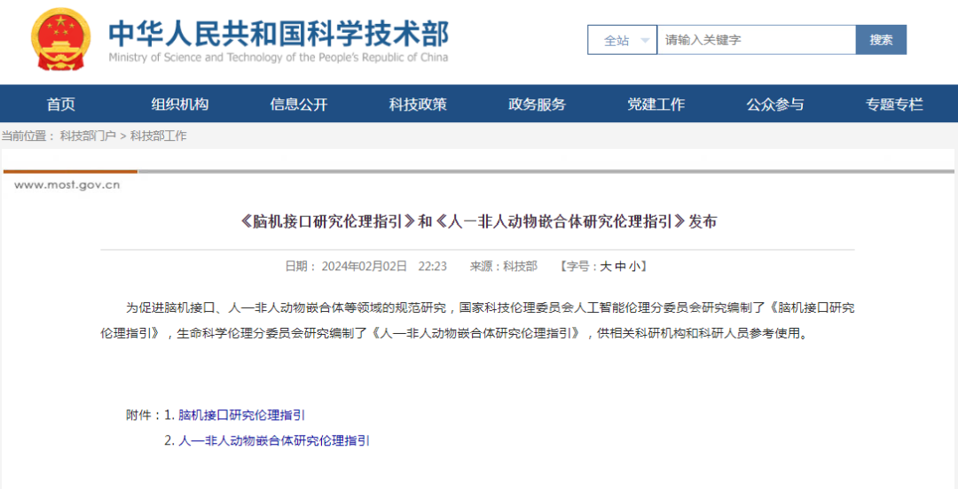 2024年2月2日,國家科技倫理委員會人工智能倫理分委員會編制的《腦機接口研究倫理指引》發布,系中國首個專門編制關于腦機接口研究的倫理指引文件,《指引》明確開展腦機接口研究應確保研究具有社會價值,應主要致力于修復型腦機接口技術,強調通過技術的發展服務公眾的健康需求。非醫學目的的注意力調節、睡眠調節、記憶調節、外骨骼等增強型腦機接口技術,應在嚴格規范、明確獲益的前提下,一定程度上鼓勵探索和發展。《指引》是中國回應腦機接口研究熱潮中潛在倫理問題的重要嘗試,對腦機接口技術中的術語和技術分類做了明確的界定與劃分,澄清了倫理審查工作中可能遇到的概念模糊,具有里程碑意義。