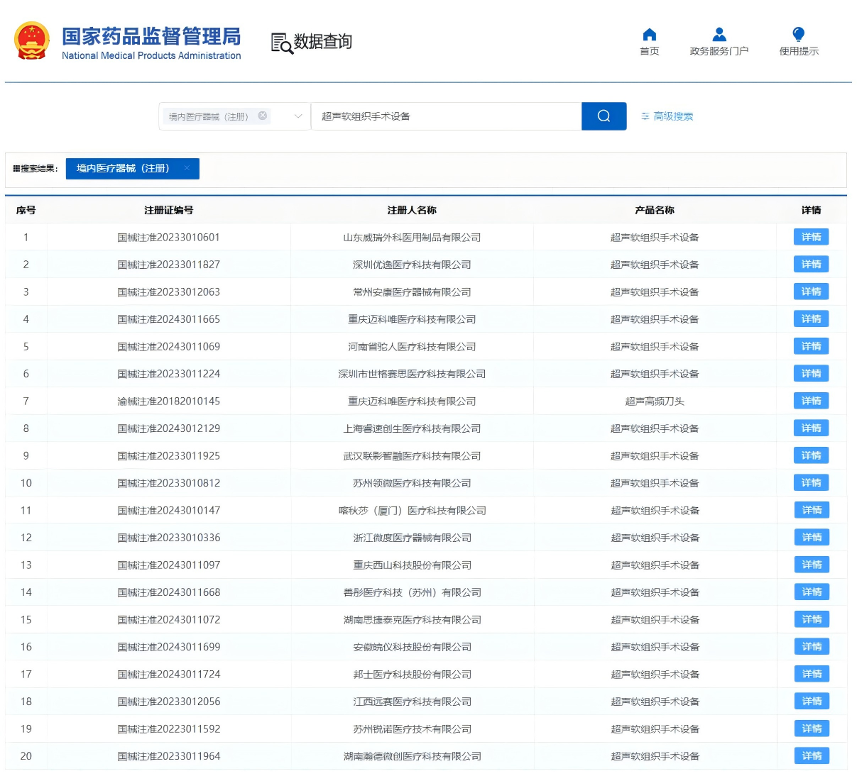 ● 2024年8月,賽諾微醫療科技自主研發的一次性使用超聲高頻外科集成手術設備超聲刀頭產品獲得NMPA批準上市,系中國第一把獲批上市的國產7mm超聲刀。