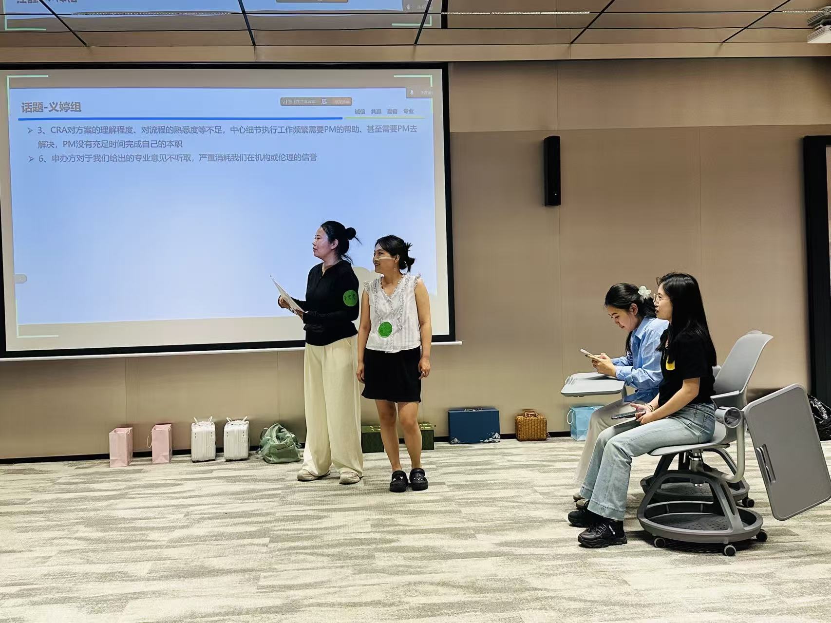 有效的溝通是團(tuán)隊(duì)協(xié)作的基石。本次培訓(xùn)引入了“非暴力溝通”理念,通過情景模擬與案例分析,幫助學(xué)員掌握傾聽、表達(dá)與反饋的技巧,減少人際沖突,提升團(tuán)隊(duì)凝聚力。通過不同情節(jié)的生動(dòng)演繹,團(tuán)隊(duì)成員詮釋出日常工作中的各種棘手問矛盾,許多學(xué)員表示,這一環(huán)節(jié)讓他們重新審視了溝通方式,學(xué)會(huì)了如何以更平和、高效的方式解決工作中的矛盾。這不僅是一種技巧,更是一種修行,它能幫助我們化解與研究者、受試者或團(tuán)隊(duì)成員間的潛在沖突,營(yíng)造和諧、高效的工作氛圍。