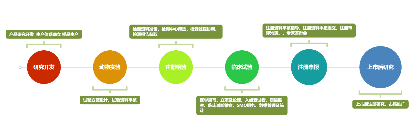 研究開發—動物實驗—注冊檢驗—臨床試驗—注冊申報—上市后研究